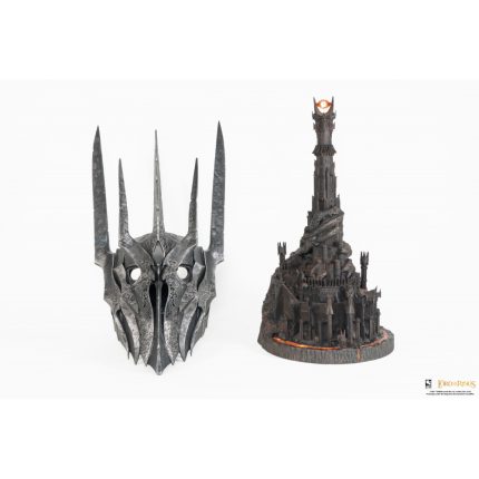 Haut de 89 cm au total, le casque est impressionnant tout comme sa base qui n'est autre que Barad-dûr, coup de genie pour Pure Arts puisque nous avons ici deux statues en une, le detail qui fini de convaincre: l'oeil de sauron en haut de la tour est equipé d'un light up et est visible par les orbites du casque.