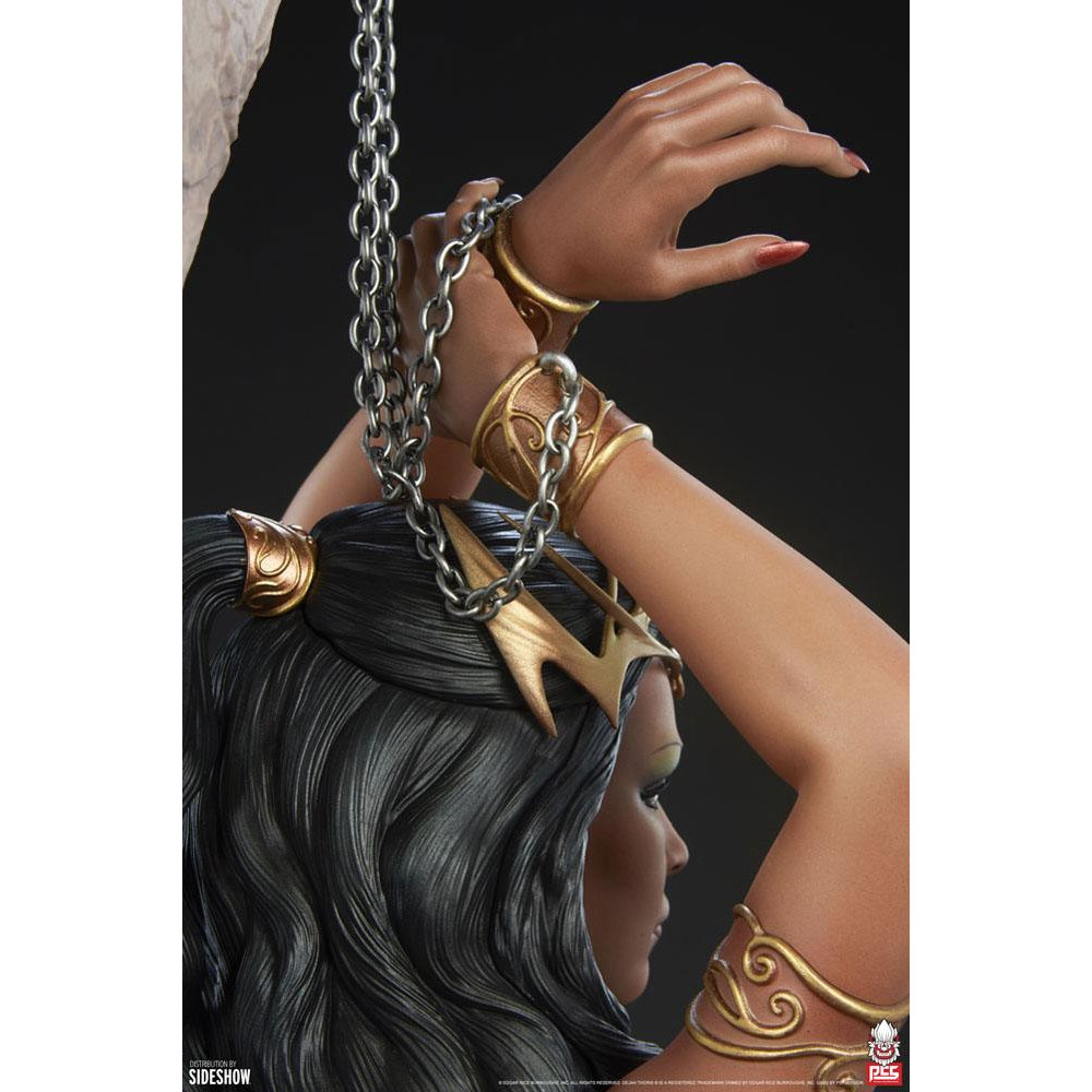 Au format 1/3 la statue propose un superbe sculpt, de vrais chaines et mesure environ 90cm.