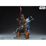 Duel au sabre laser totalement dementiel de la toute fin de The Clone Wars, le combat Ahsoka contre Darth Maul est dors et deja rentré au pantheon des meilleurs moments de l’univers global de la franchise, Sideshow nous en presente ici une reproduction super charismatique qui va mettre tout le monde d’accord.
