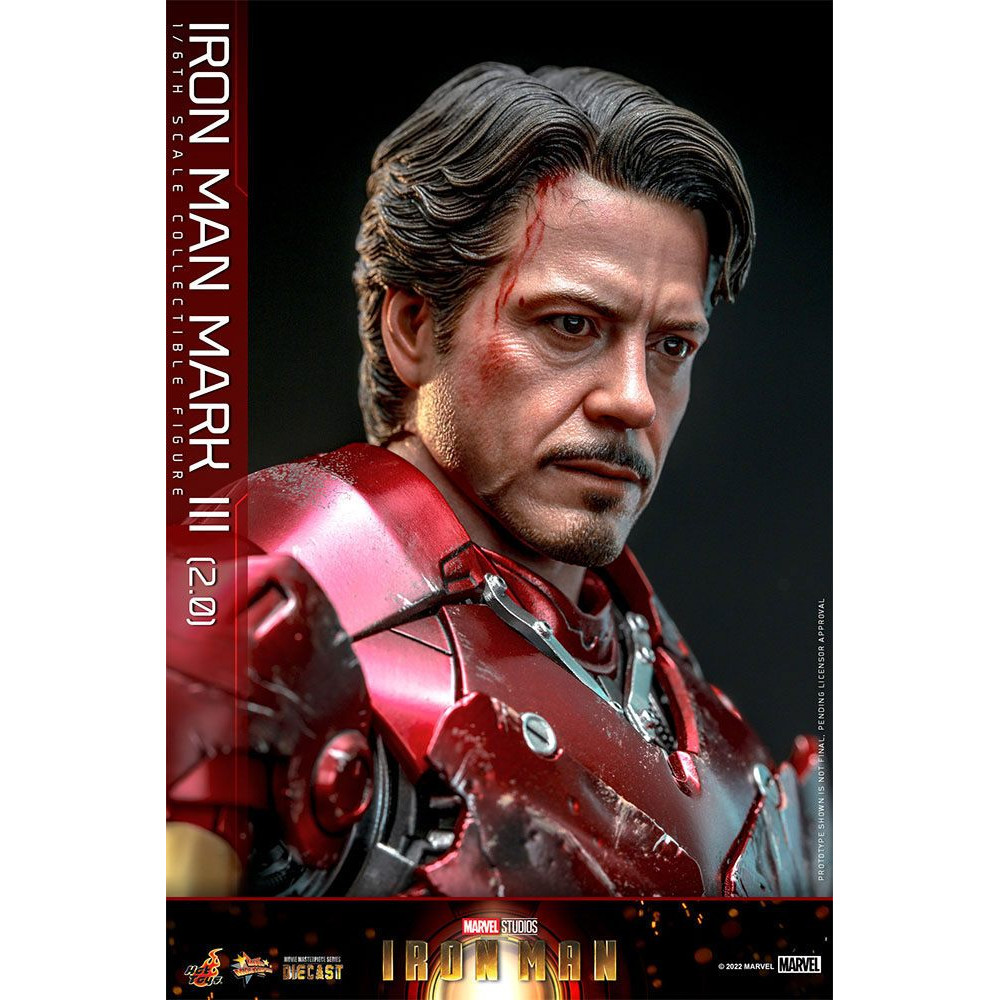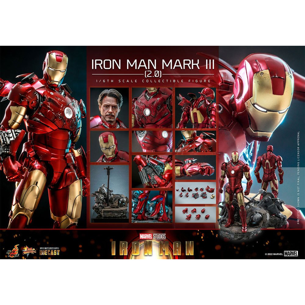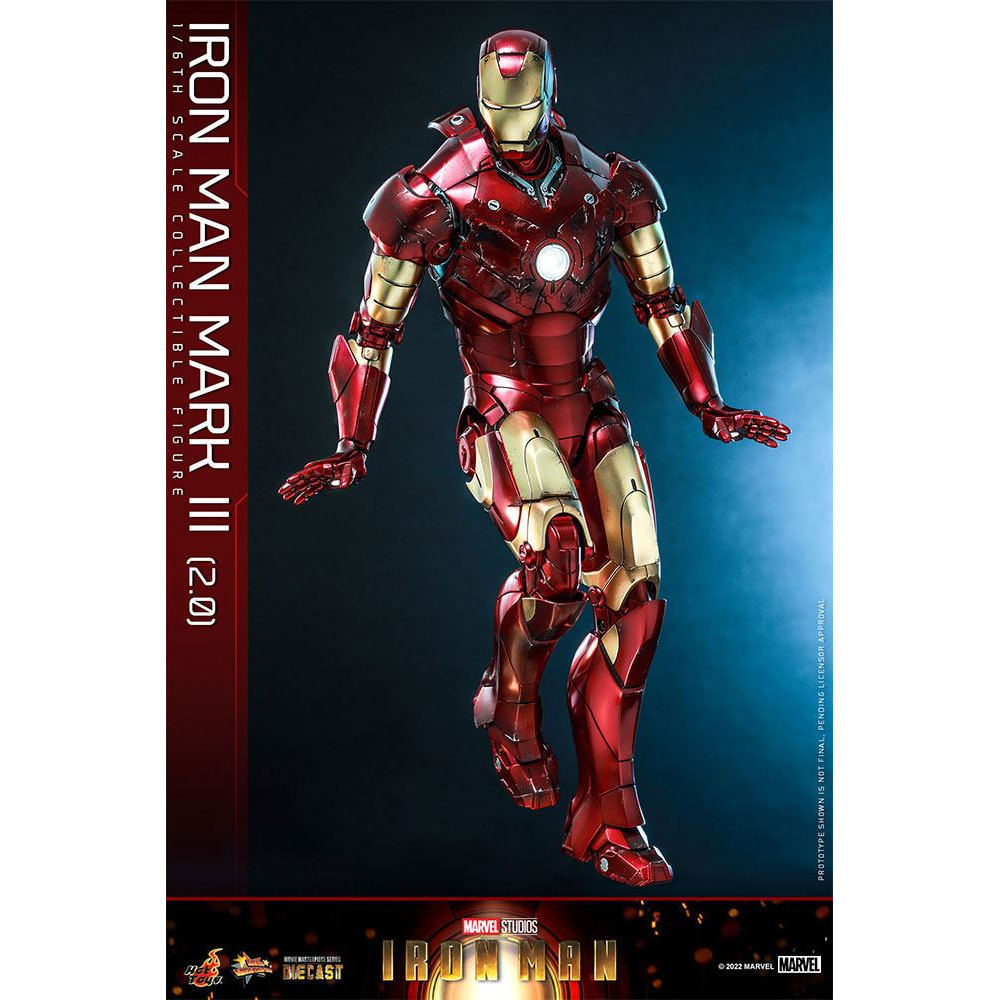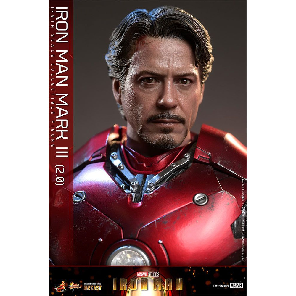 Voici une superbe v2.0 pour le Mark III chez Hot Toys, en fait nous somme face a une 3eme version de la celebre armure du 1er film puisque HT a deja fabriqué une version en plastique puis une version Die Cast du Mark III.