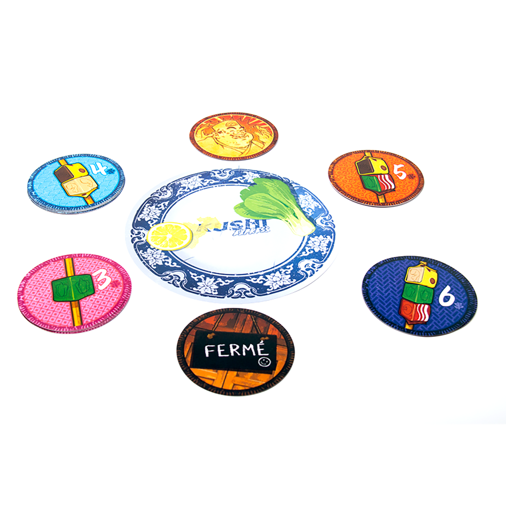 La partie se termine à l’apparition de la carte “Fermeture”, et celui avec le plus de points devient le « King of Kushi »