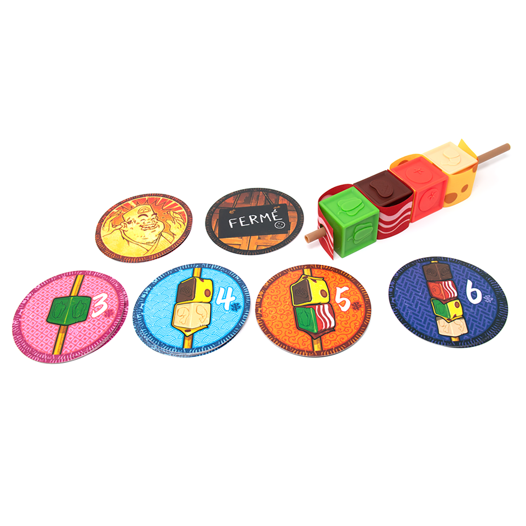 1 assiette centrale et 30 cartes commande (27 brochettes, 2 cartes « Kushi ! », 1 carte fermeture) Wikipédia+3Wikipédia+3ludoboardgames.com+3instaplay.fr+5tactique2jeux.fr+5Carnet des geekeries+5Carnet des geekeries+1cavernedugobelin.com+1.