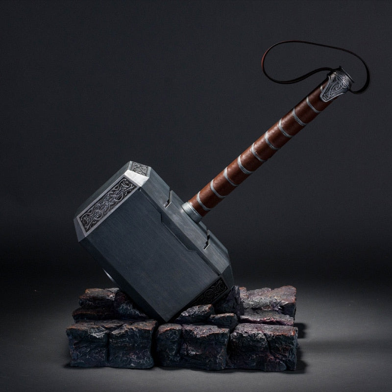 Vous avez entre vos mains le légendaire marteau Mjolnir appartenant à Thor, dieu de la foudre dans l’Univers Cinématographique Marvel et aussi dans la mythologie nordique.