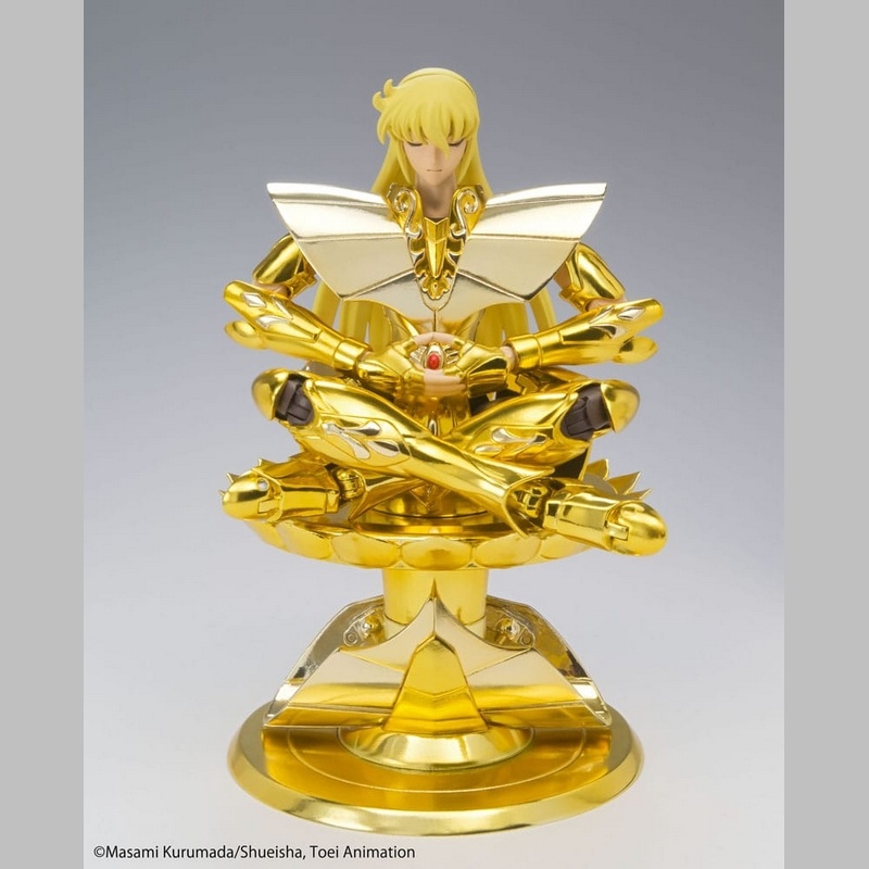 La figure articulée du personnage de Virgo Shaka, qui apparaît dans la série animée « Saint Seiya », dans la ligne Myth Cloth EX de Bandai. Cette figurine mesure environ 18 cm de hauteur, elle est faite en PVC/ABS et moulée sous pression et elle a un revêtement chromé impressionnant sur l’armure.