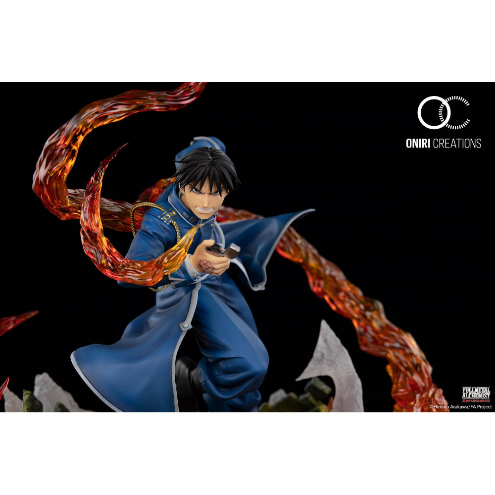 La statue s’inspire de son combat face à Envy dans lequel Roy laisse parler sa colère et son incroyable pouvoir. Face à la déferlante de flammes, l’Homunculus ne peut rien contre le Colonel.