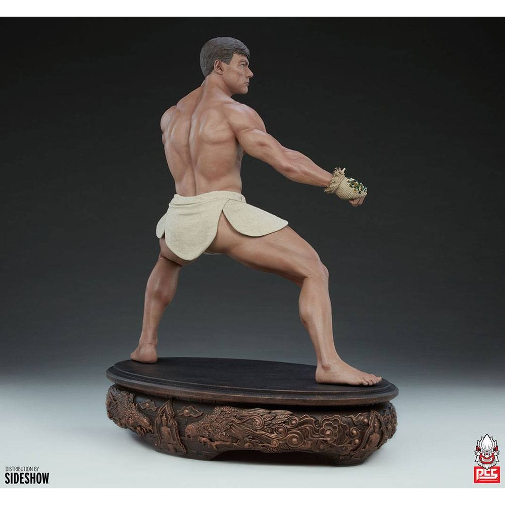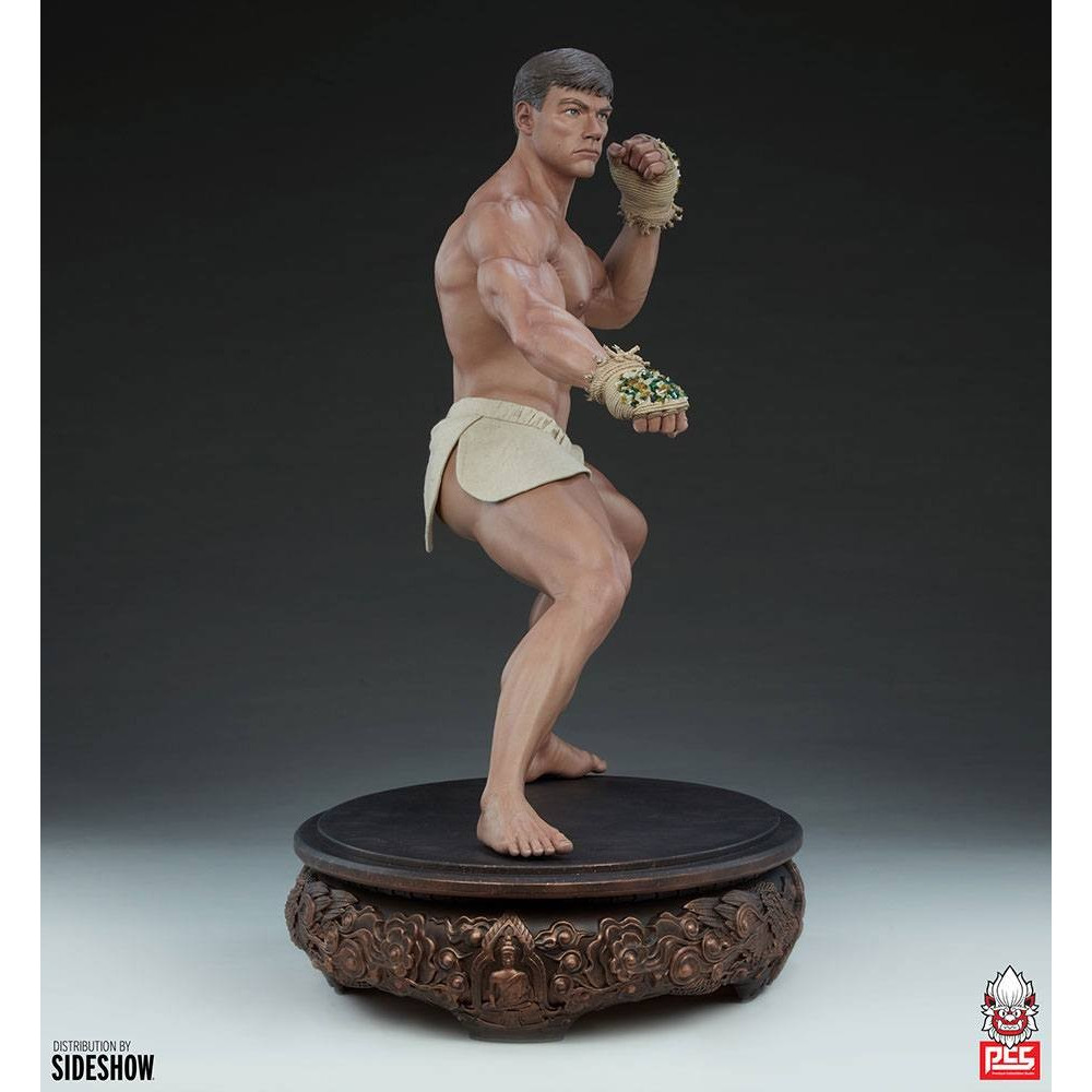 En effet tres rare sont les effigies de JCVD dans le milieu du produit derivé et voir arriver une statue au format 1/3 qui plus est a de quoi surprendre.