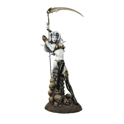 Statuette en résine, dimensions env. 63 x 57 x 51 cm avec socle décor. Modèle fini et peint à la main en édition limitée.