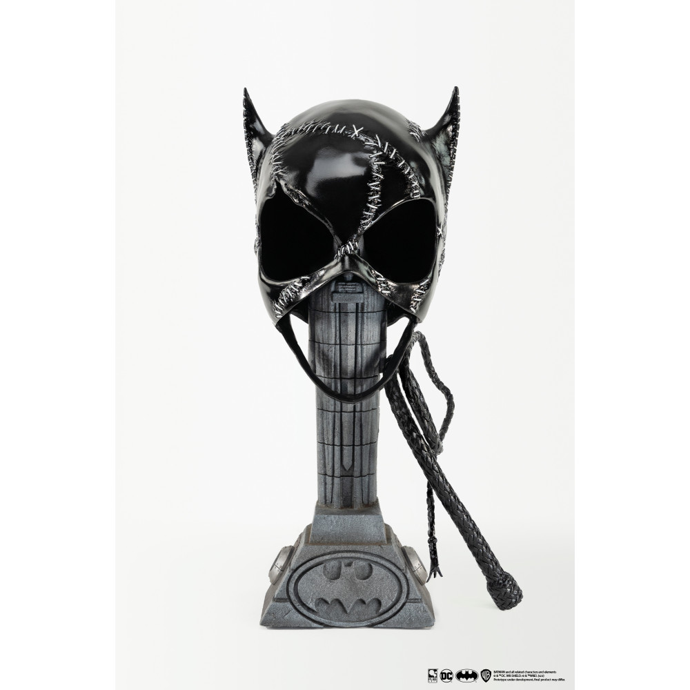 Crée a l’aide de scans 3D de l’accessoire original du film de Tim Burton , PureArts nous presente ici une superbe replique taille reelle du masque de Catwoman . Le fouet de catwoman enroulé sur la base donne un aspect unique a une pièce de choix dans toute collection sur ce personnage mythique incarné par Michelle Pfeiffer !