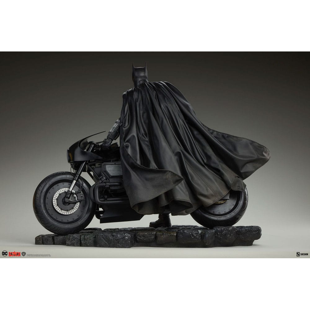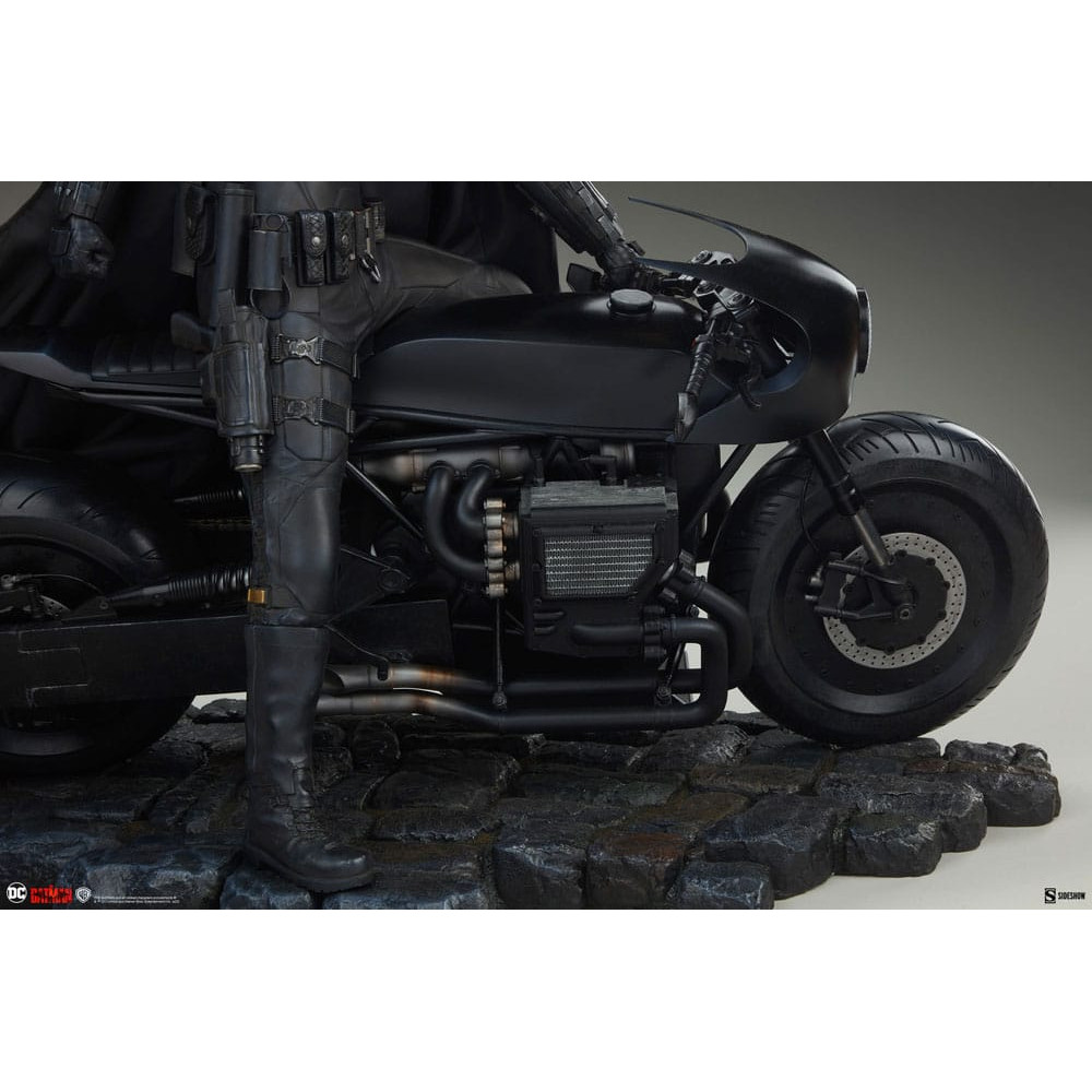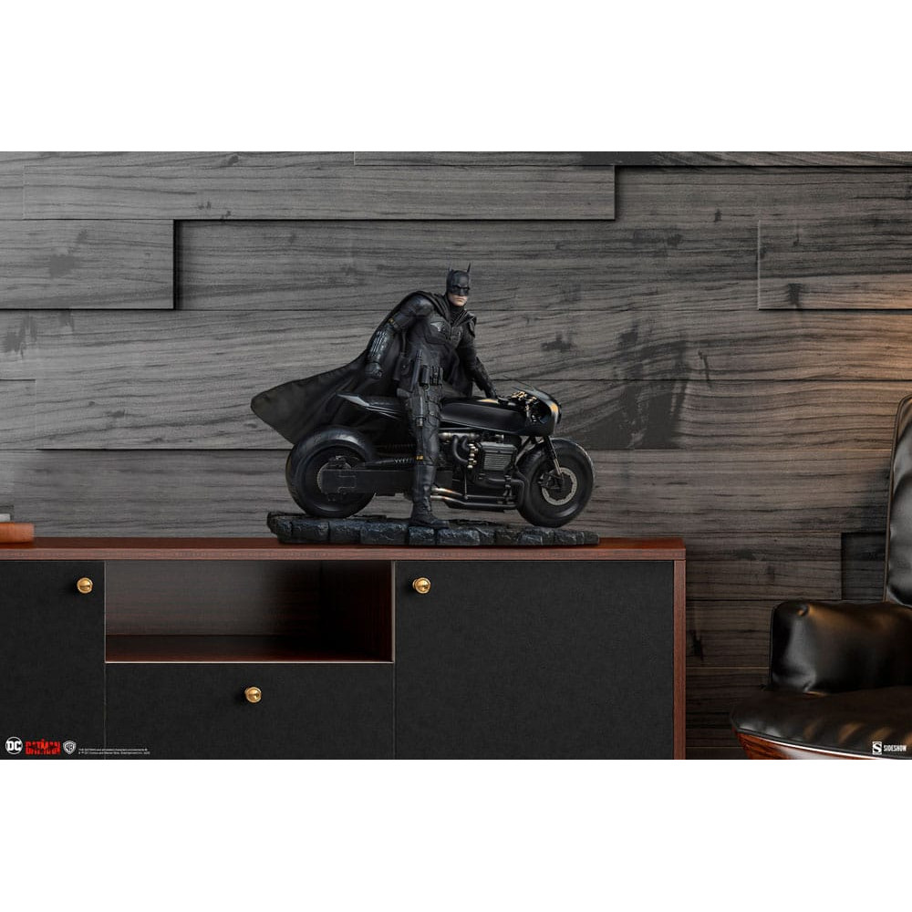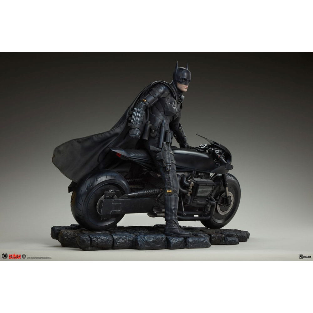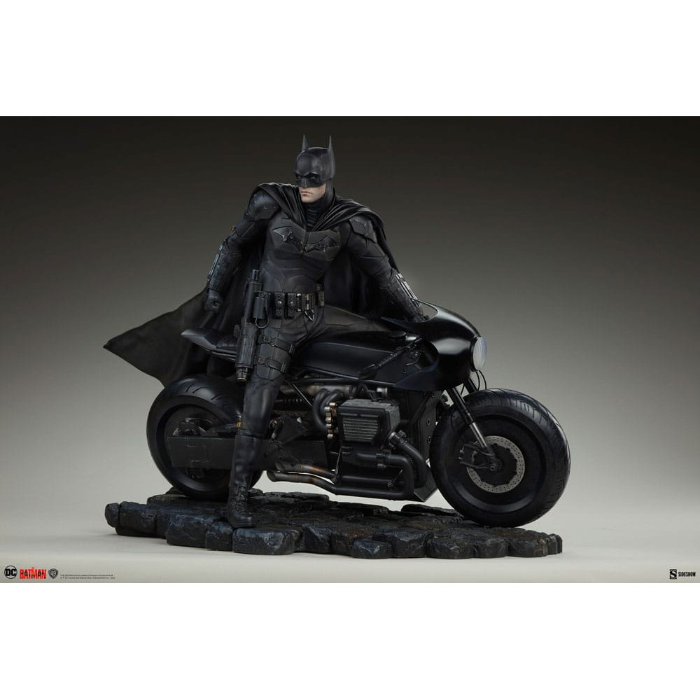 Voici une Premium Format assez inhabituelle, en effet Sideshow nous propose ni plus ni moins que le Batman de Matt Reeves sur le Batcycle au format 1/4!