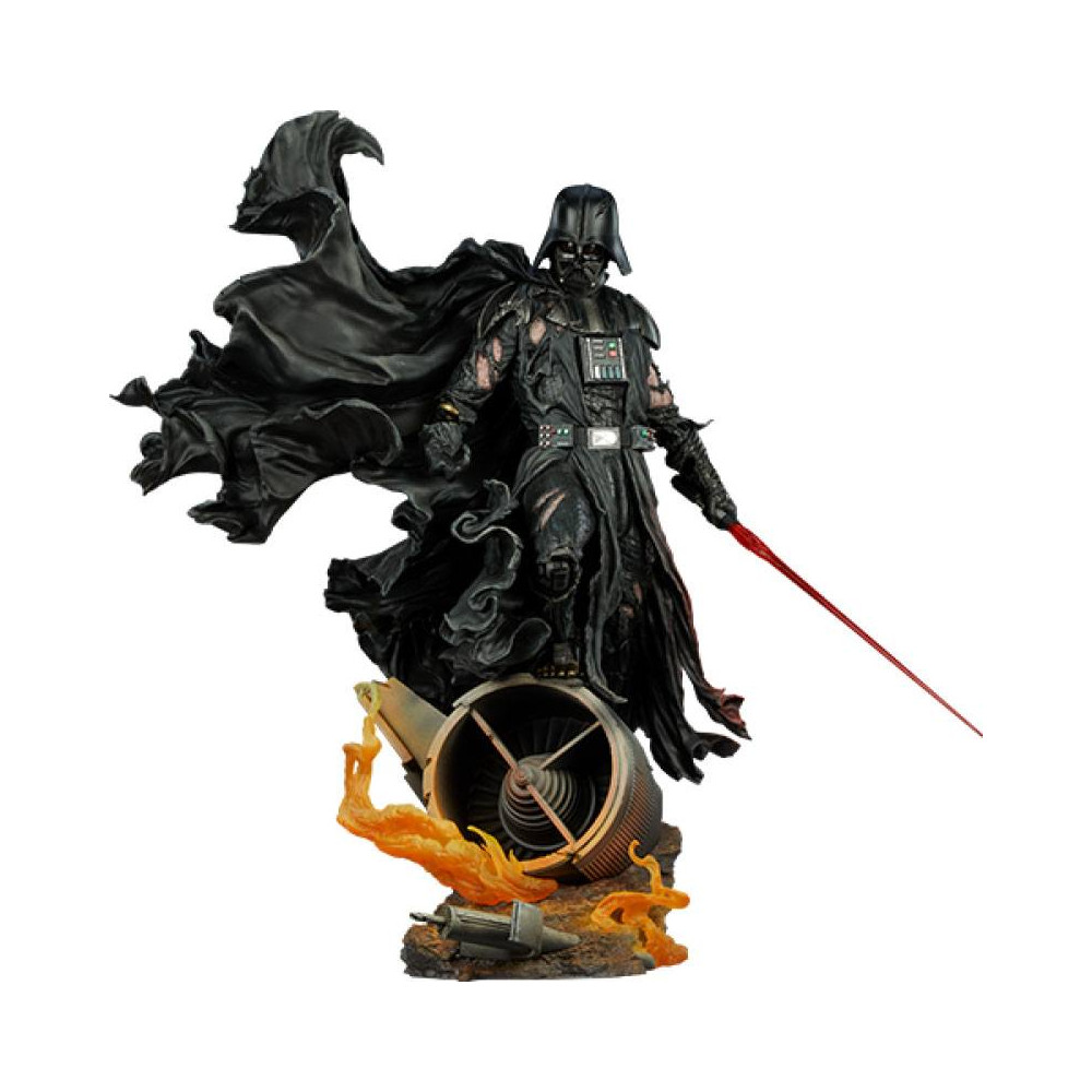 Ce Vador perché sur les débris en flamme d’un X-Wing est juste impérial, du drapé superbe de sa cape aux multiples détails de dégâts de sa combinaison, tout ramène au combat furieux qu’il semble livrer on imagine sur Mustafar.