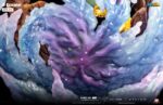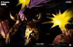 Cette figurine de collection le capture en plein déchaînement cosmique, les bras levés, libérant une pluie d’étoiles destructrices. Son armure dorée, minutieusement sculptée et peinte avec des reflets métallisés, brille de mille feux sous l’éclat des constellations. Ses cheveux violets flottent avec élégance, traduisant la sérénité et la concentration du personnage.