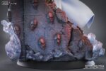 Le socle est l’un des éléments les plus marquants : il évoque le Mur des Visages, composé des âmes piégées de ses ennemis, ou un portail vers les Enfers, accentué par des effets spectraux en résine translucide (formes fantomatiques, crânes, brume violette).